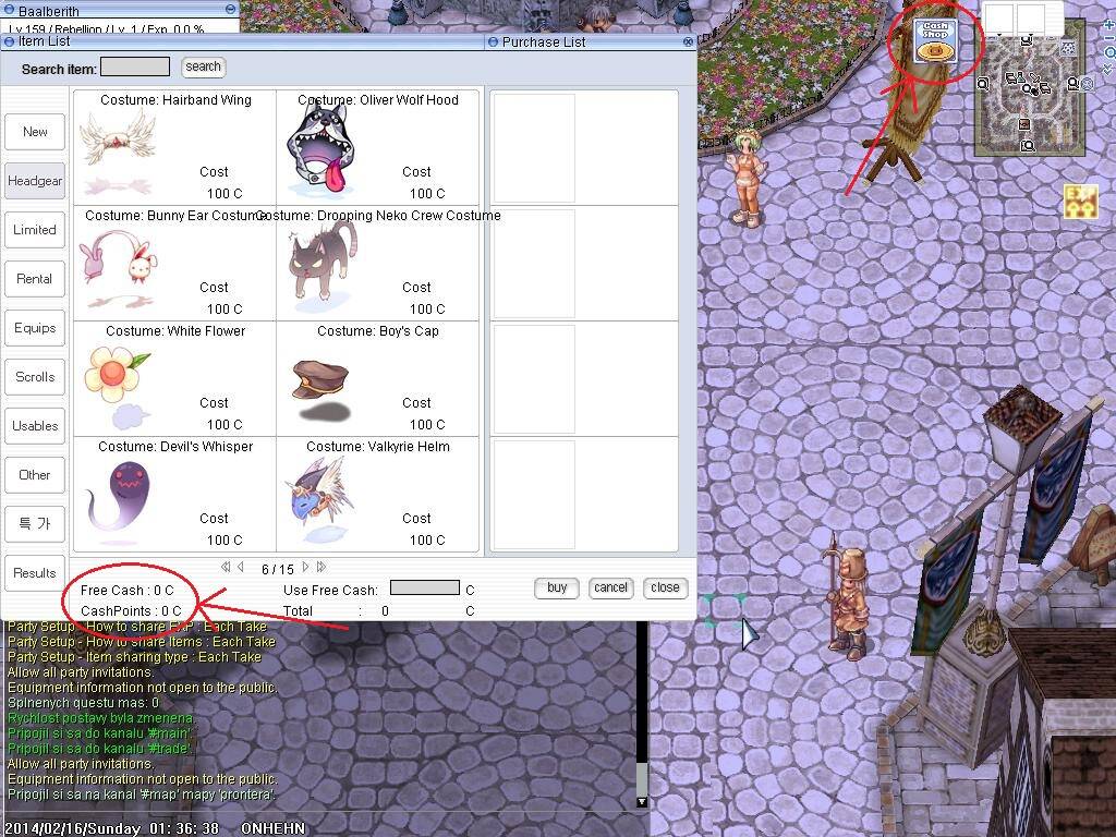Cash Shop je v podstate obchod s itemami, ktory pouziva specialnu menu - tzv. Cash Shop Body. Cash Shop body sa ziskavaju viacerymi sposobmi: