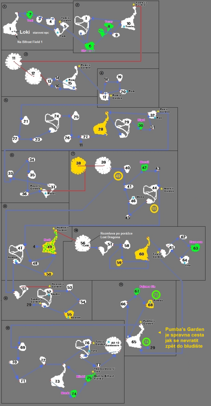 - zlute jsou oznacany ostrovy s moznosti spawnu Lost Dragona