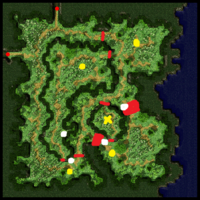 Celá instance se odehrává na mapě pay_fild10, akorát na některých místech jsou závaly vypadá to zhruba takto (červeně jsou označené závaly, bíle warpy do dalšího patra a žlutě dark faceworm + křížkem faceworm queen)