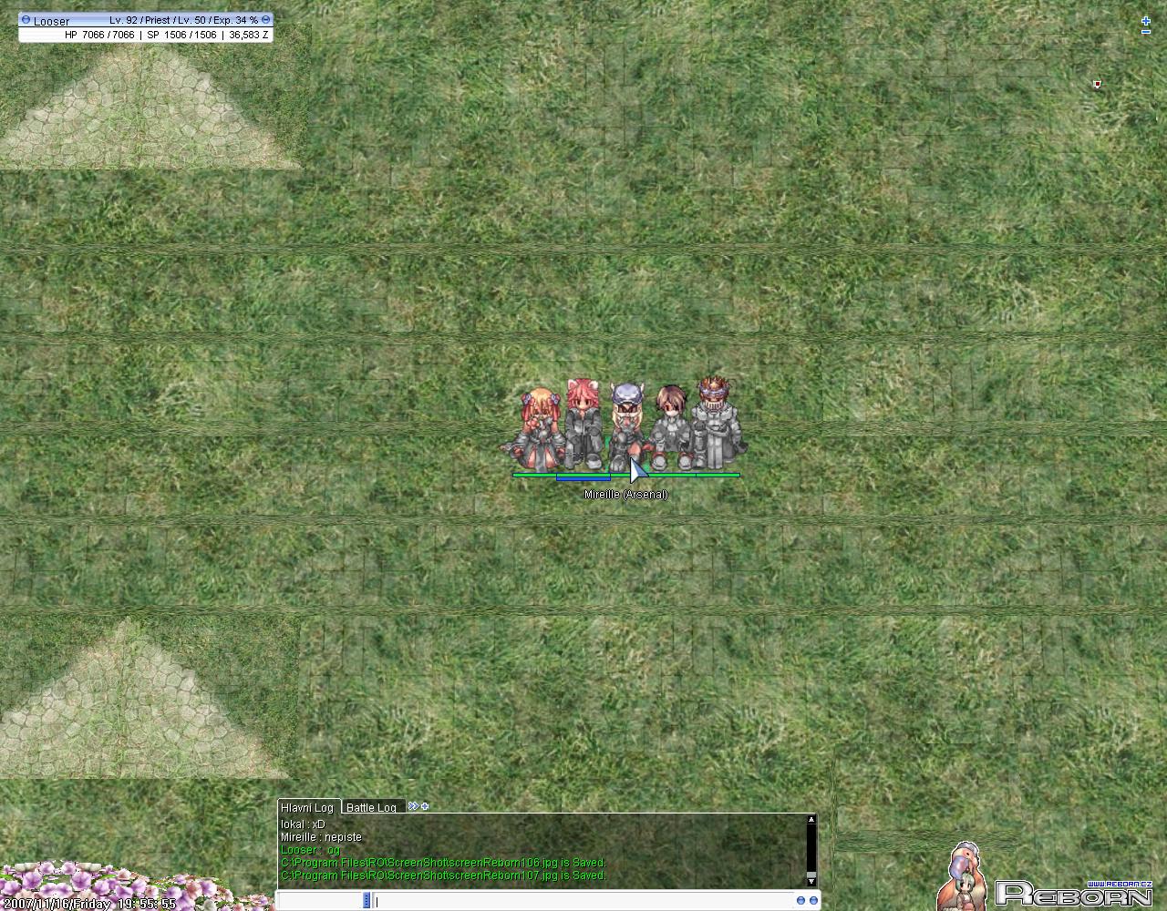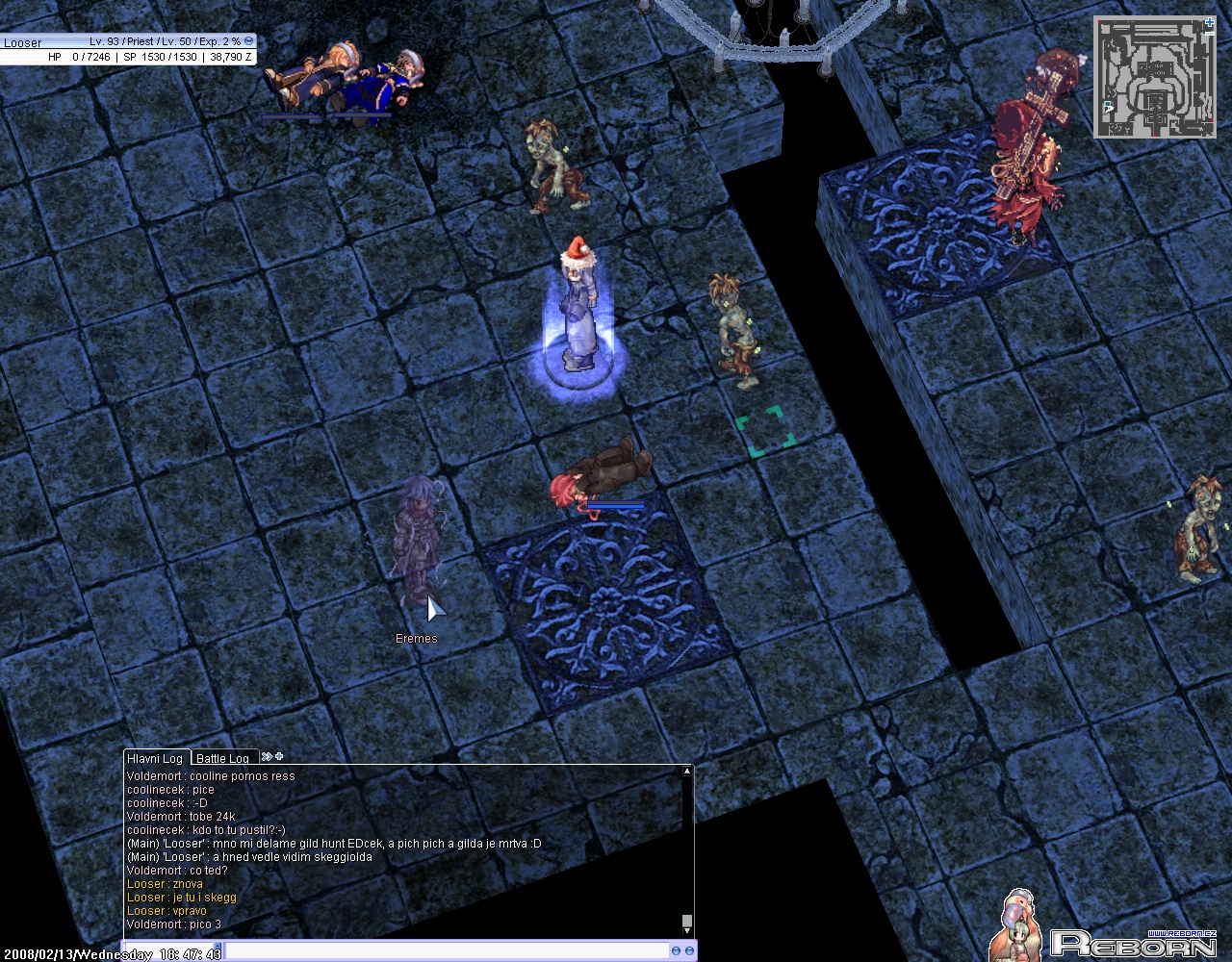 Na konci listopadu 2007 jsem založil guildu Loosers znovu, s postavou Looser (což byl původně guildovní priest - jeho nick mi zůstal do dnes). Tu guildu jsem založil z části ze zoufalství, protože Reborn se mi zdál trošku upadající a chtěl jsem zažít staré dobré časy - hádky, pěkné historky, společné expení, bossování (já a Petruss jsme chodili occultovat Tao gunku) a z části na podnět Othise, kterého jsem po dvou letech potkal na Reborn eventu. Zde památný screen z eventu. Nicméně po týdnu jsem v gildě zůstal sám a to z velké části kvůli mé lhostejnosti (hrál jsem za Petruss a na Looserovi jsem se ani neukázal). Uvědomil jsem si, že by to tak nešlo a začal jsem se gildě naplno věnovat. Jako první jsem se zaměřil na shánění exčlenů. Kromě Othise (který mi už guildu leavnul) jsem nenašel nikoho. Tak jsme byli dva. A dva jsou pořád málo. Tak jsem se obrátil na těch pár úžasných lidí, které jsem měl tu čest na Rebornu potkat. I když jsem jim nabral jen duálové postavy, měl jsem pocit že to půjde (Vilgefortz, Crowley, Sicario, Morgie Andy de Claire, Ceris). Protože jsem se zdržoval většinu času v PVP nebo na geographerech, začal jsem nabírat postavy tam (Yogi, Mentor, Kaps, Monk007, Kaltua, Ramosek, Frytys). V této době jsem měl opět lidi v gildě, někteří se v ní semtam ukázali. Nicméně pořád to nebylo ono. Věděl jsem, že se to jednou změní a také se tak stalo. Památné noci 10. prosince 2007 jsem potkal v pronteře na náměstí sage o němž jsem v životě neslyšel, sage, jenž sháněl gildu. Jeho jméno bylo (a stále je) Dani Filth. Časem jsem zjistil, že nabrání Daniho byl úžasný krok. Přivedl totiž své neduálové kamarády, kteří se potulovali končninami Midgardu a o nichž jsem taktéž neslyšel. A tak jsem měl tu čest potkat Freecoolina, Ditu von Teese, Voldemorta. Později si členové začli přibírat své Ragnarokové (i reálné) přitelkyně. A tak přibyli 1Arwen1, Elisse, minie, Taiko, jessy. Z Loosers, gildy, která měla zastoupení pouze jedné statečné dívky se stala gilda plná slečen, poměr kluci x holky je nyní téměř 1:1. Jednotlivými členy se budu zabývat nakonci a to zejména proto, že si zaslouží vaši pozornost. Když si spočítáte všchny členy které jsem vyjmenoval, zjistíte, že jich je moc. I v té krátké novodobé historii nás hodně členů opustilo. Na některé budem vzpomínat s láskou, na některé až tolik ne, ale nezapomeneme.