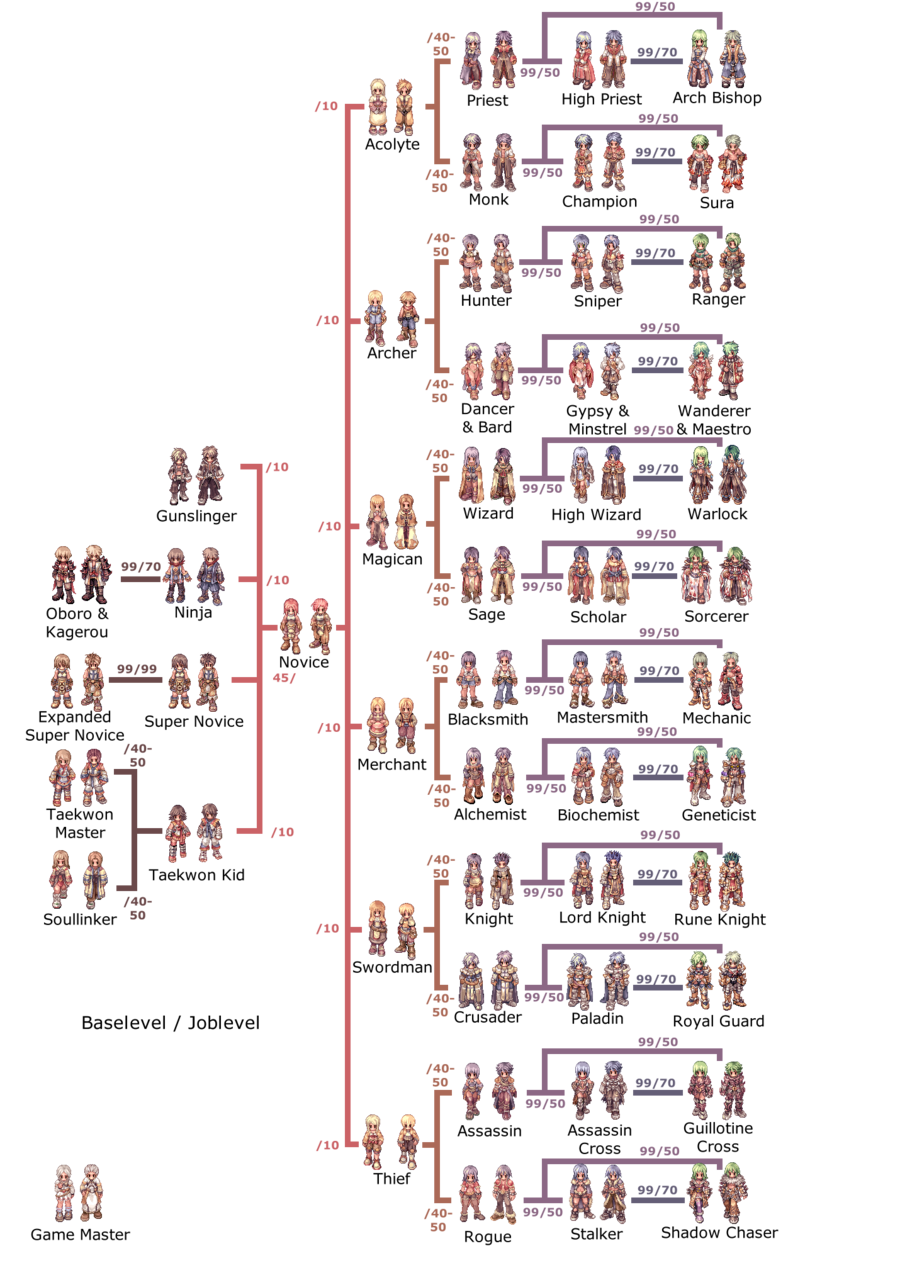 Starší verzeZpětné odkazyNahoru Share via Share via... Twitter LinkedIn Facebook Pinterest Telegram WhatsApp Yammer Reddit TeamsPoslední úpravySend via e-MailPrintPermalink × Přehled Povolání Povolání v RO se rozdělují na tyto skupiny: Normal Advanced 3rd Expanded Characters tree Normal Novice class Novice Super Novice 1-1 class Swordman Acolyte Archer Mage Thief Merchant 2-1 class Knight Priest Hunter Wizard Assassin Blacksmith 2-2 class Crusader Monk Bard Dancer Sage Rogue Alchemist Advanced 2-1a class Lord Knight High Priest Sniper High Wizard Assassin Cross Whitesmith (Mastersmith) 2-2a class Paladin Champion Clown (Minstrel) Gypsy Professor (Scholar) Stalker Creator (Biochemist) 3rd Více informací o 3rd naleznete zde. 3-1 class Rune Knight Arch Bishop Ranger Warlock Guillotine Cross Mechanic 3-2 class Royal Guard Sura Minstrel Wanderer Sorcerer Shadow Chaser Genetic Expanded 1-1e class Gunslinger Ninja Taekwon 2-1e class Star Gladiator 2-2e class Soul Linker 3-1e class Oboro Kagerou Rebellion - Ve vývoji povolani.txt Poslední úprava: autor: mibu