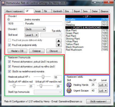 - Nastavení skillů staršího typu homunkula se vztahuje k jeho nastaveni.